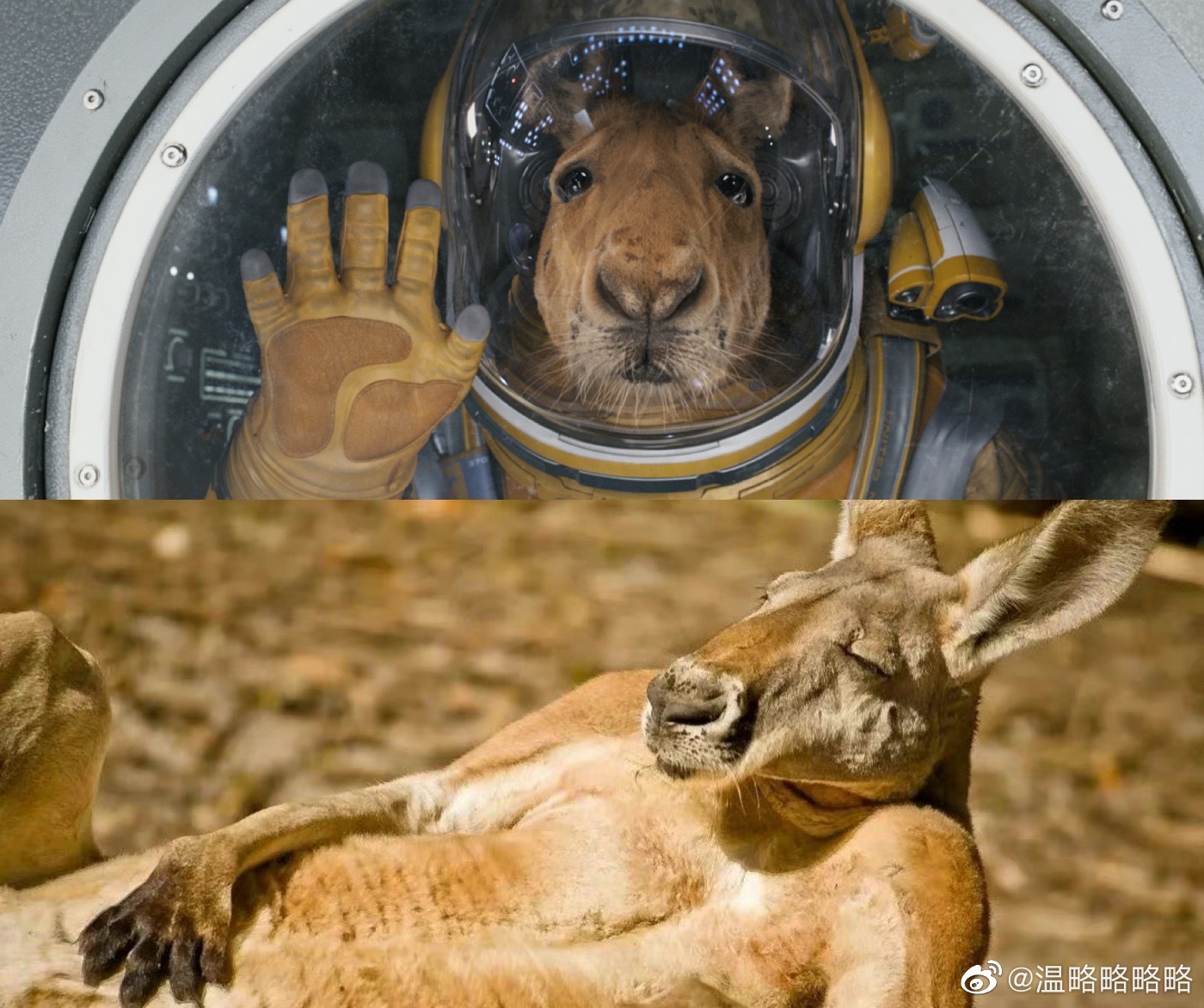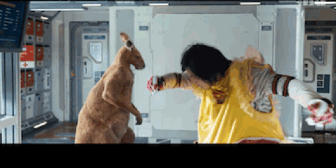 那些日子,他每天泡在袋鼠区,观察它们眯眼、弓手、跳跃的每一个细节。据报道,拍摄时,他穿着七八件衣服,套上超过五十斤的宇航服,被两个武行拉着吊威亚,满场跳几十个来回,大腿内侧磨得不成样子。而聊到这些事,他也只是说“我不是天赋型演员”。