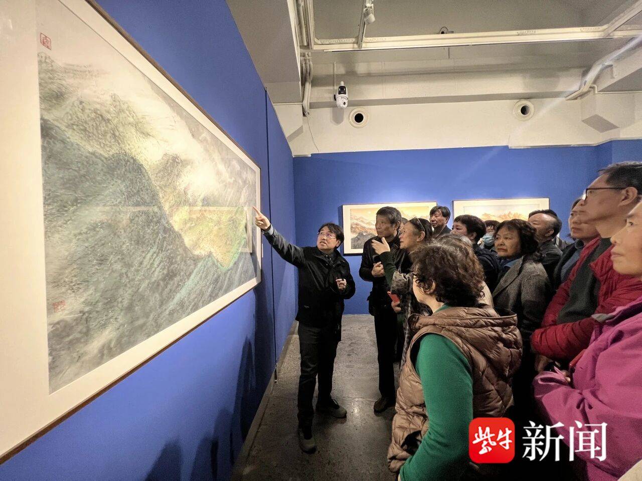 4月3日,黄戈主讲的“山水致道”朱道平、黄戈、杨运高师生作品展导览活动在金陵美术馆成功举办。活动开始,黄戈向金陵美术馆捐赠作品《延安精神代代传》,为馆藏建设注入了新的活力。随后黄戈带领大家开启导览活动,黄戈结合自身创作经历与艺术理念,带领观众深入解读山水画的空间营造技巧、笔墨语言特色及背后蕴含的传统文化内涵,实现了“作品—艺术家—观众”的零距离对话,打破了传统展览“只可远观、不可近读”的局限。来自雨花老年书画研究会、石城书画研究会、南京航空航天大学老年书画研究会、九华老年书画研究会、南京老年文化大学书画研究会、兰园老年书画研究会、熊猫电子老年书画研究会及钟山书画研究会等八个单位的老年会员参与了此次活动。现场交流热烈,老年书画爱好者们纷纷表示此次活动受益匪浅,为南京老年书画界提供了一次宝贵的学习与交流平台。
