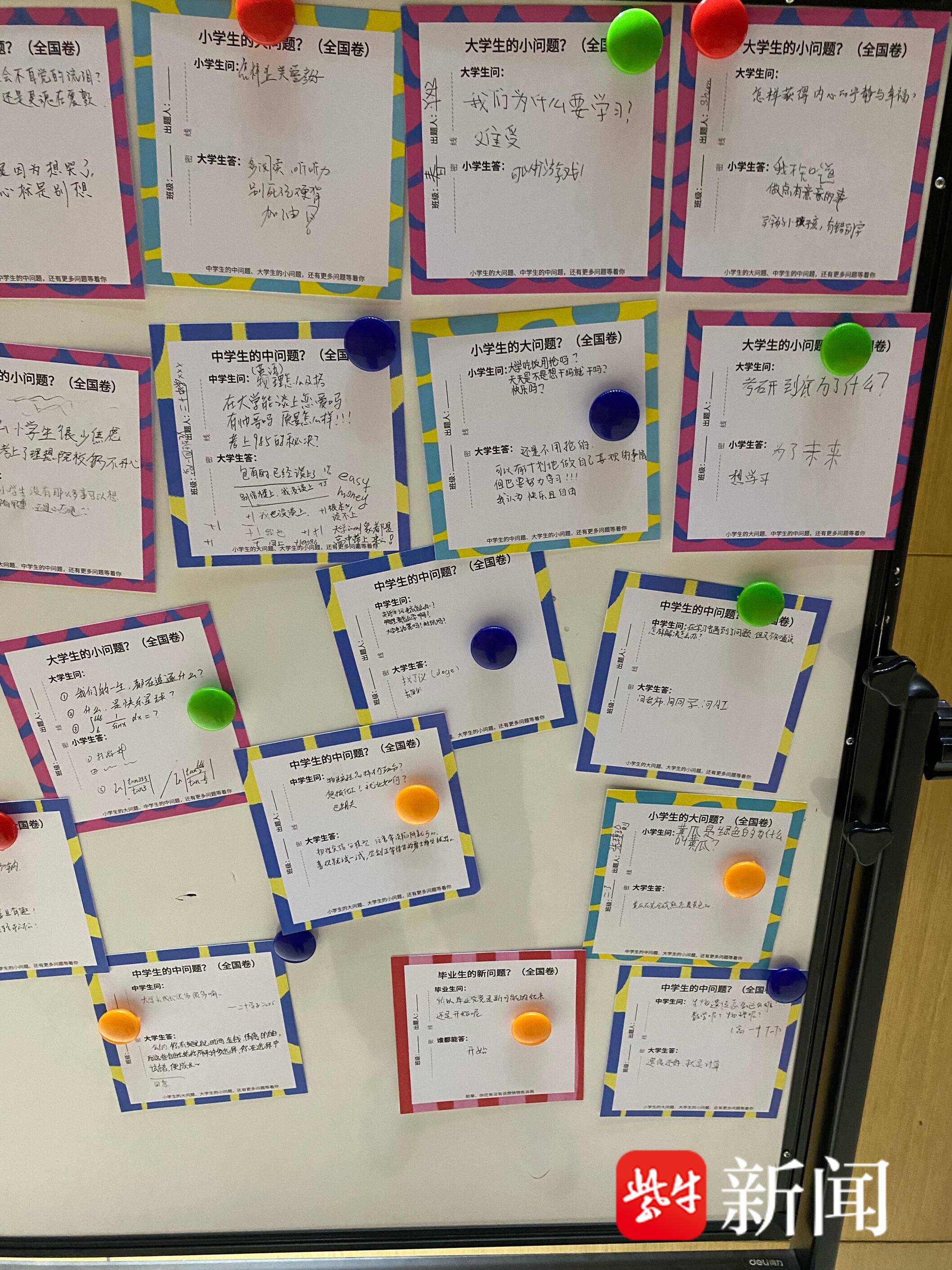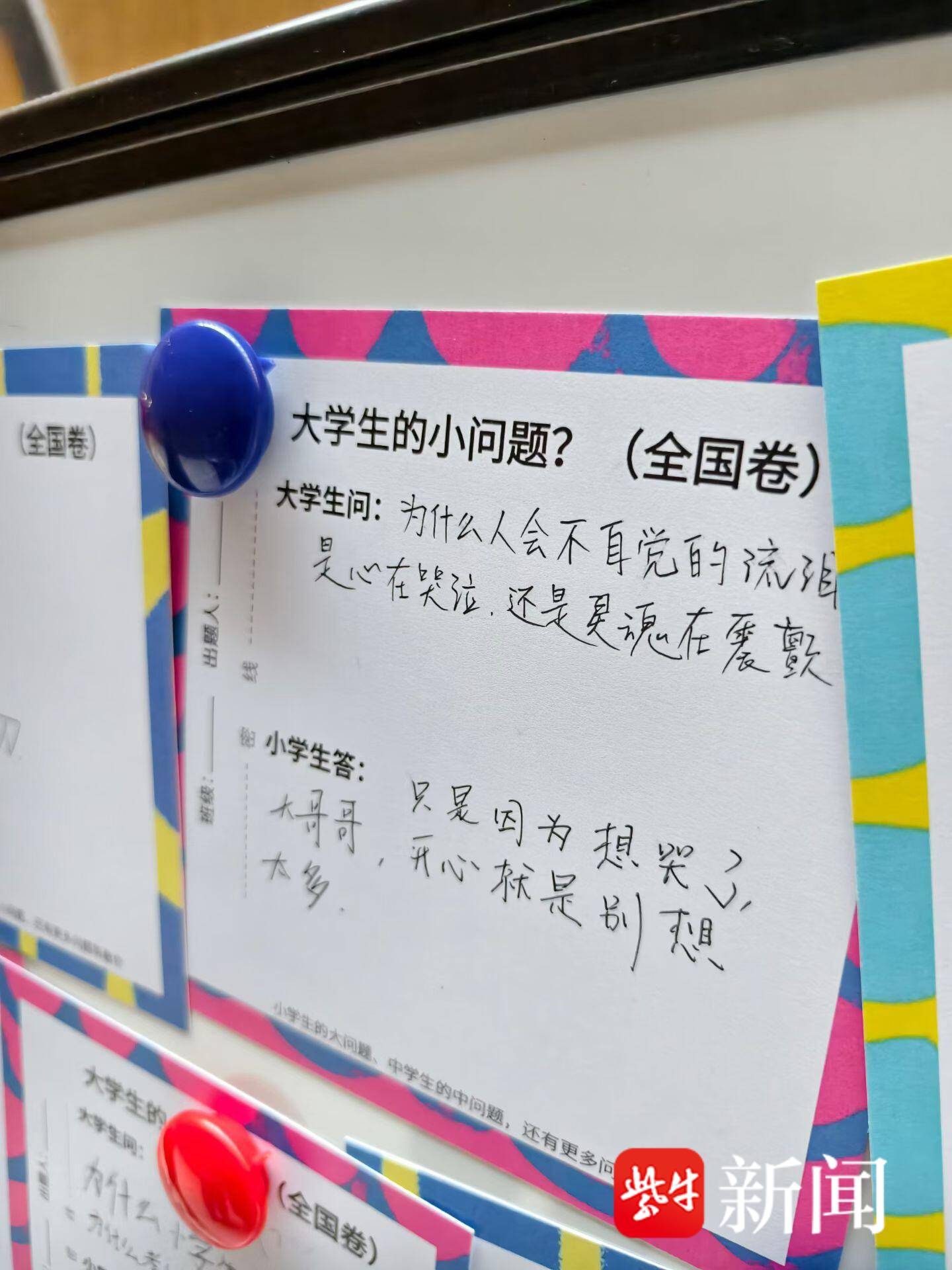 这么有趣的活动,到底是怎么想出来的?带着疑问,扬子晚报/紫牛新闻记者采访了天津大学图书馆负责阅读推广的车老师。她坦言,一开始完全没预料到这块留言板会火得一塌糊涂。最初的策划极其朴素:学校在4月4日至11日海棠季面向市民开放。图书馆是大学的心脏,同时也兼具服务社会的责任,当市民怀揣向往和好奇来到这里,就让这颗心脏向社会搏动,让小学生的视界和大学生的视界有一个轻松的交汇点。车老师觉得,在这个快节奏的流量时代,真正能打动人心的,永远是真挚纯粹的情感流动。三十岁的人可以给二十岁的人建议,二十岁的大学生同样能从十岁孩子那里获得力量。生命不同阶段的人在这里互相观照,本身就是一种极好的治愈力量。现场的氛围也印证了这一点。据车老师回忆,开放日期间,成群的中小学生围在留言板前凝神品读,趴在板子上认真思索怎么开导大哥哥大姐姐,还一笔一画写下满肚子的好奇,追问着令他们满心向往的大学生活究竟是什么模样。等游客散去,大学生们便接管了阵地,他们干脆蹲在地上,就着孩子们留下的只言片语,兴致勃勃地继续往下写。