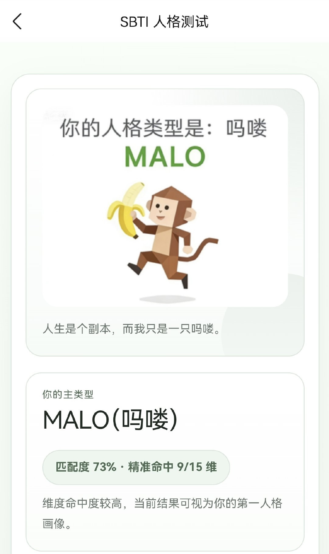第三,它设计成了零门槛、高裂变的社交货币。题目简单、热梗自带传播力,测出来的“吗喽”“imsb”无需解释就能引发圈层共鸣和互动,完美适配朋友圈和社群的裂变逻辑。