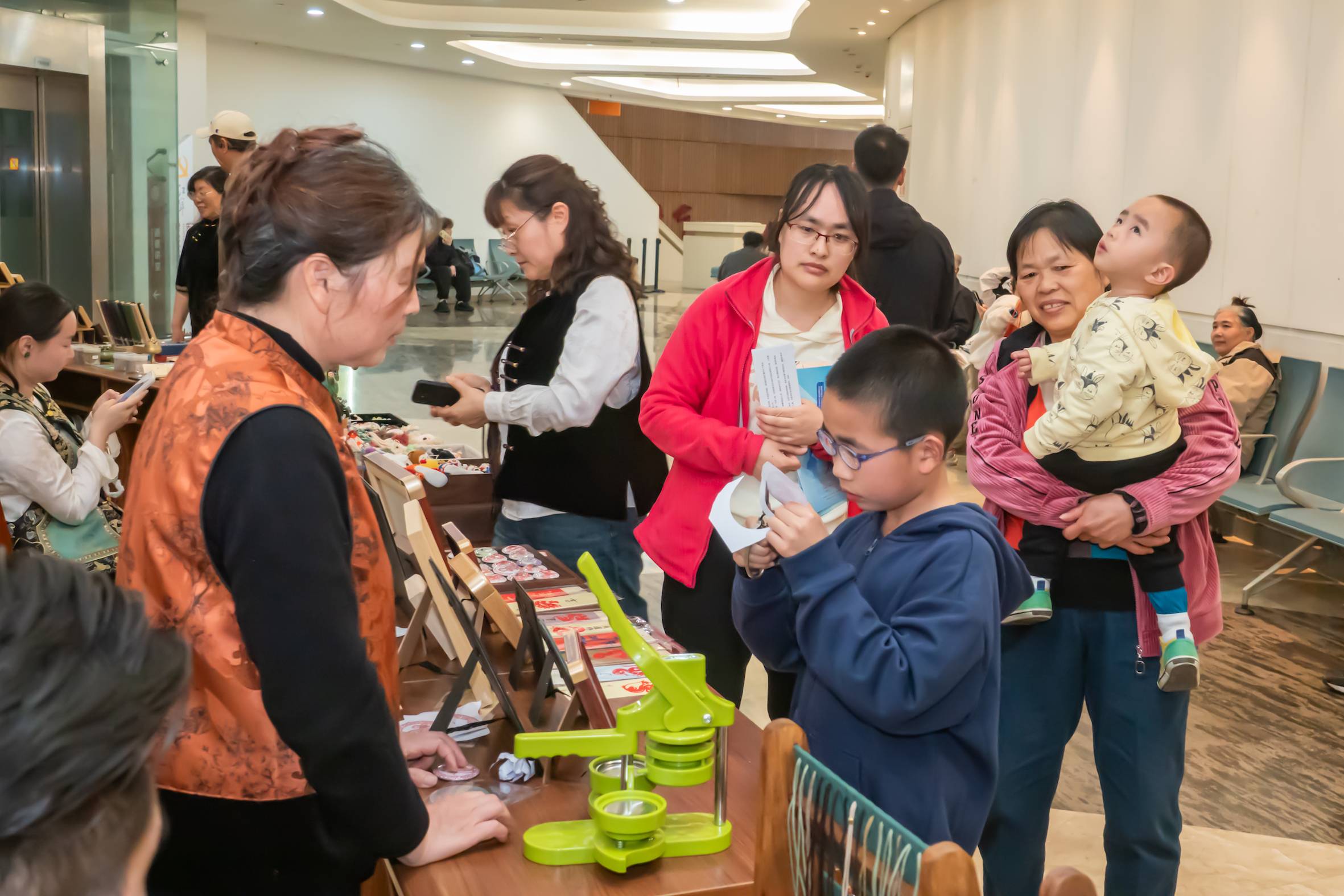 场内演出精彩纷呈,场外同样热闹。剧场大厅变身“非遗体验区”,江宁本地非遗项目纷纷亮相。铜山剪纸艺人手法娴熟,剪刀飞舞间,“秦淮灯影”“牛首烟岚”跃然纸上,不少市民亲手尝试“纸上生花”;杨柳村米糕香气扑鼻,传承人展示古法制作,软糯口感勾起童年回忆;六气窖香传承人按古法调配香料,淡淡清香传递节气养生之道。带孩子来体验的王女士感叹:“剪纸里的家乡山水、米糕中的桂花香味、香雾里的节气故事,这才是真正的乡愁!”