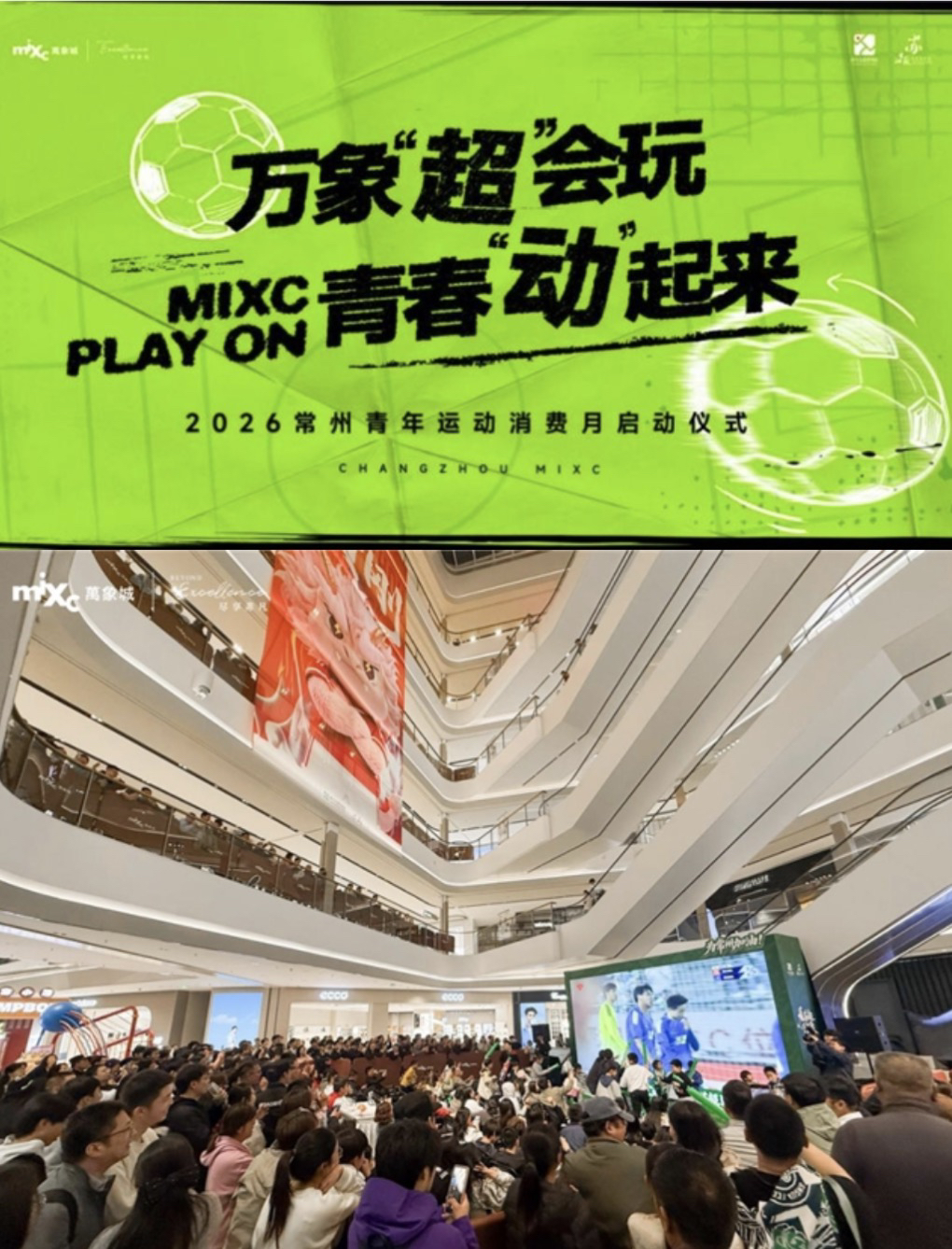 4月11日晚,苏超联赛常州队以3:0战胜南通队,为城市赢得开门红。在常州万象城线下观赛点,百余名青年球迷围坐在大屏幕前,为常州队的每一次精彩进攻呐喊助威。当终场哨声响起,现场沸腾的欢呼声印证了一个事实:当城市热点与青年热情同频共振,商业空间便不再只是消费场所,而成为承载集体情感的城市客厅。