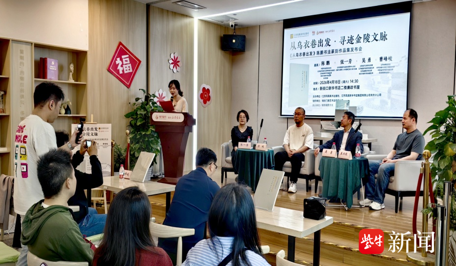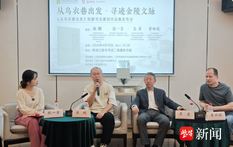 六朝烟雨润金陵,笔墨丹青承文脉。4月18日下午,江苏文艺名家名师带徒计划(第二批)的结业个人成果汇报展示作品《从乌衣巷出发——陈鹏书法篆刻作品集》在新华书店新街口店举行了新书发布活动。众多专家学者、书法篆刻艺术创作者、热心读者、新闻媒体人云集发布现场,一同分享了青年艺术家陈鹏积微成著、蓄势促发的创作历程以及生命体验,共同见证了江苏省书法艺术薪火相传、守正创新的生动实践。发布会由江苏凤凰美术出版社、南京市新华书店新街口店、南京门鼎艺术品有限公司联合主办,南京融韵文化具体承办。