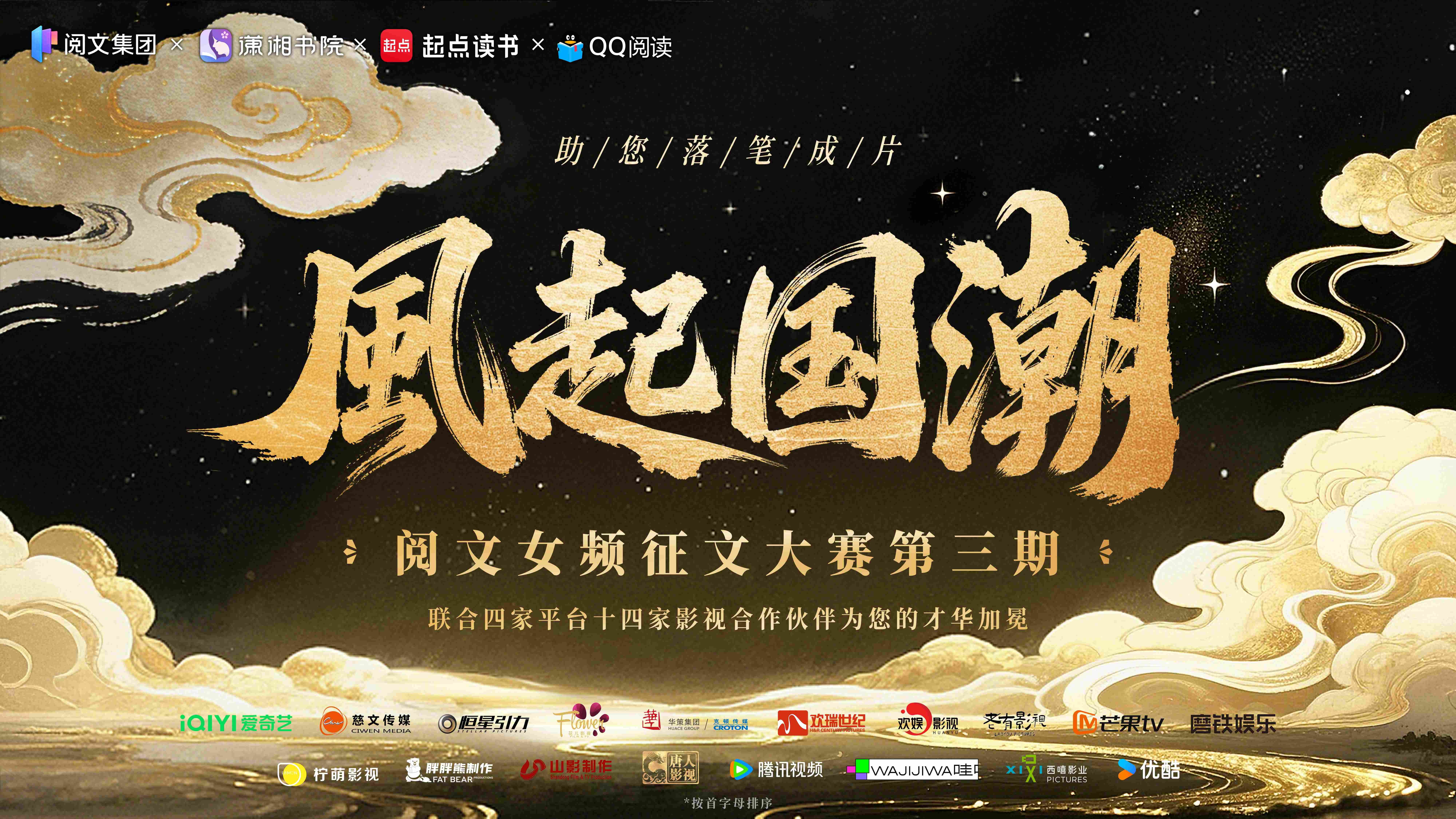 2026年4月22日,“风起国潮”阅文女频征文大赛第三期正式启动。大赛由阅文集团携手爱奇艺、芒果TV、腾讯视频、优酷四大平台及十四家影视公司共同发起,在前两期成功经验基础上持续升级,以百万收益、海量推荐资源及影视优先签约权为激励,深度链接优质网络文学创作与影视制作,致力于发掘下一个现象级IP。