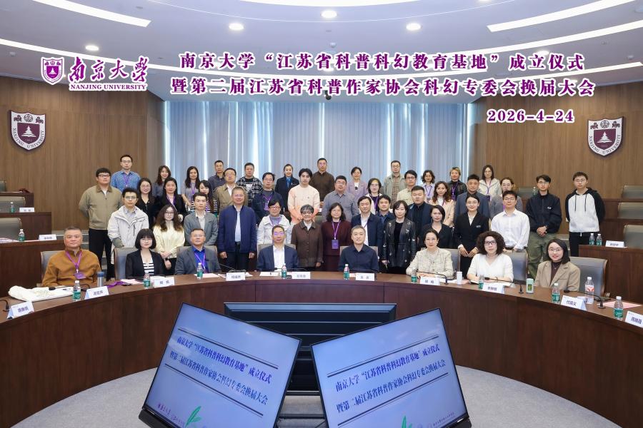 4月24日,正值“中国航天日”和首届“全民阅读活动周”,南京大学“江苏省科普科幻教育基地”成立仪式暨第二届江苏省科普作家协会科幻专委会换届大会在南京大学苏州校区圆满举行。刘慈欣、王晋康、董仁威、吴显奎、海漄等科幻名家和全国各地科幻专委会负责人通过视频送来祝贺,吴岩、陈楸帆、汤哲声、双翅目等国内顶流科幻名家齐聚一堂,96岁科幻泰斗肖建亨亲笔贺信、AI与科幻巅峰对话热点强势刷屏,这场兼具传承与创新的科幻盛会,在人工智能飞速发展的当下,深刻诠释并重新定义了“人为何不可替代”。
