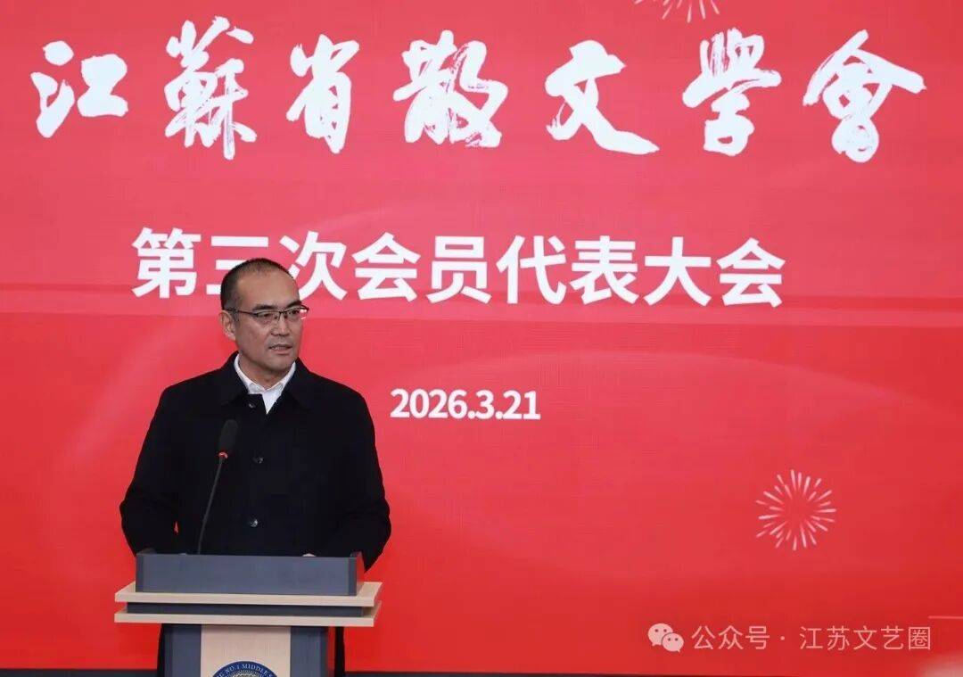 鱼雪萍指出,散文贴近生活、富有情感与生命力,是记录时代、凝聚力量的独特文学载体。当前江苏正推进“强富美高” 新江苏现代化建设,文化强省建设稳步推进,为散文创作提供了丰富素材与广阔空间。作为业务主管单位,省社科联将持续支持学会发展,同时提出三点希望:一是坚守政治方向,筑牢思想根基,深入学习贯彻习近平文化思想,将党的领导贯穿工作全过程,引导会员坚持以人民为中心的创作导向,让散文成为传递主流价值、弘扬时代精神的载体;二是聚焦主责主业,打造江苏散文品牌,做强学术平台、鼓励创新融合,引导会员紧扣江苏发展实践创作精品,实施青年创作者培养计划,壮大优质创作队伍;三是强化自身建设,提升规范治理水平,以换届为新起点完善治理机制、强化党建引领,拓展服务边界,加强与多方协作,开展各类文学普及活动,让散文走进基层、贴近群众,提升公共文化服务效能,让文学之美浸润千家万户。