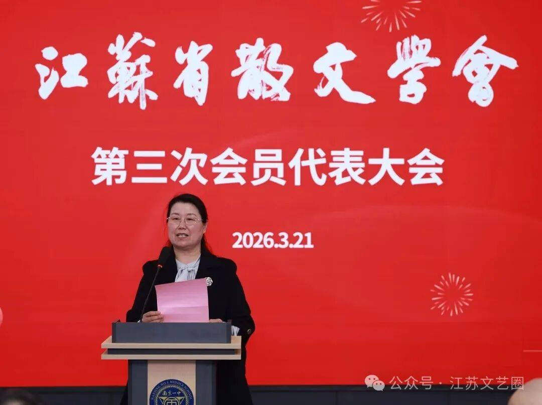 金陵三月,春意盎然,草长莺飞,文脉绵长。2026年3月21日,江苏省散文学会第三次会员代表大会暨换届大会在南京市第一中学隆重召开,来自全省各地的会员代表齐聚一堂,共赴文学之约。会议全面总结了学会过去五年的工作成就与发展经验,深入研判新时代散文创作的发展趋势,审议修订了学会章程,依法选举产生新一届理事会与领导班子。