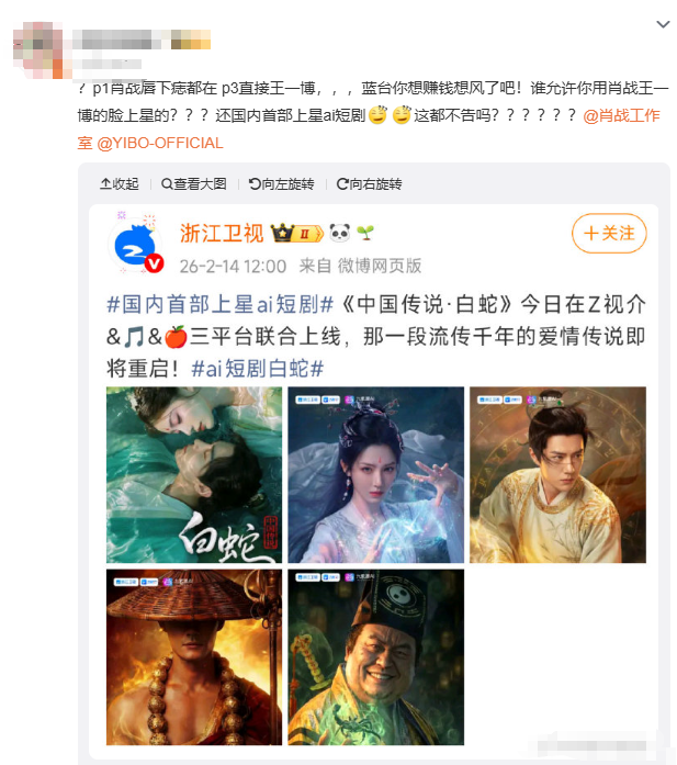 这个像王一博那个像肖战,上星AI短剧《中国传说·白蛇》被指“融脸”侵权