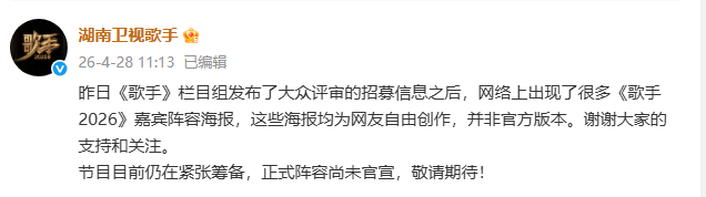 歌手2026海报是AI制作,官方打假,技术进步了虚假信息不能也“进步”