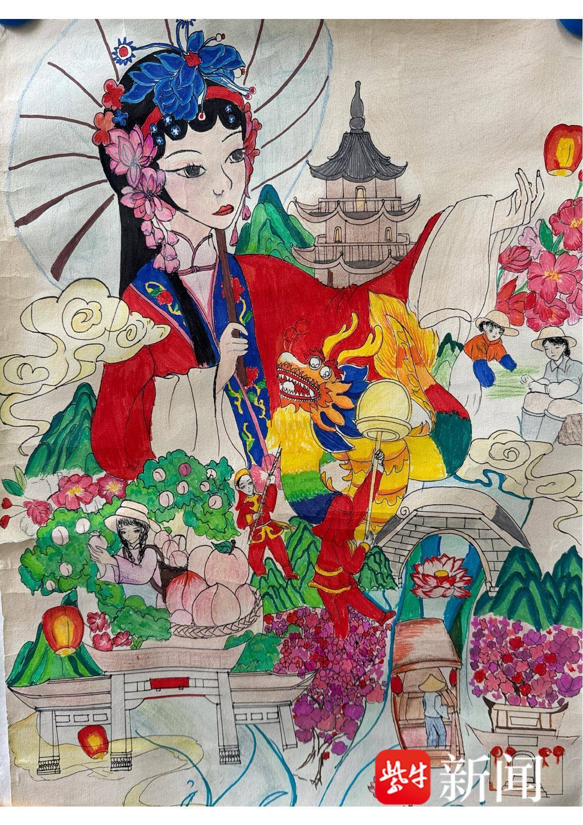 祖欣怡 西画《运河盛景-戏韵流芳》
