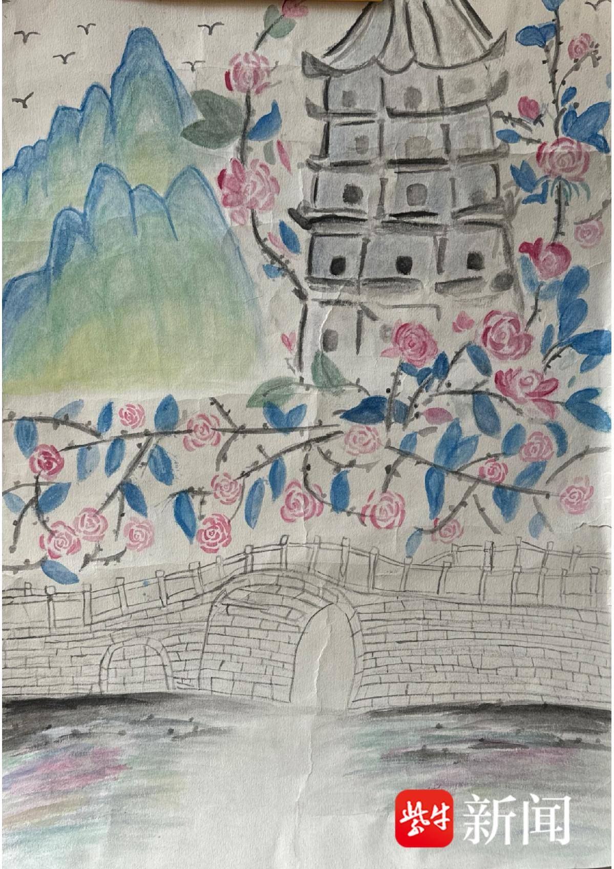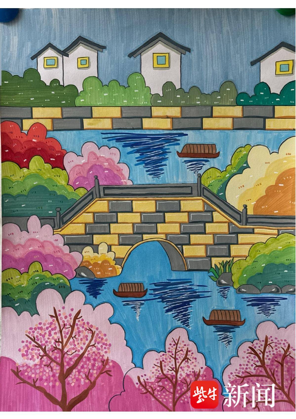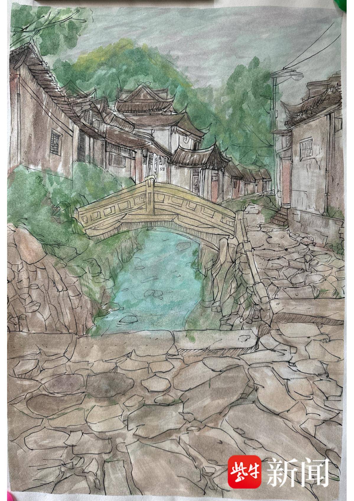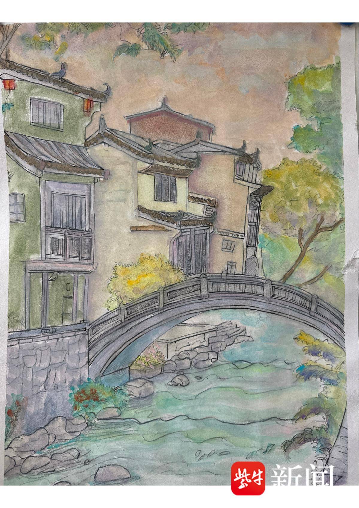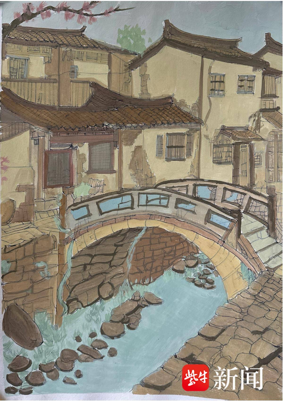 沈宇桐 水彩《石桥春晓》