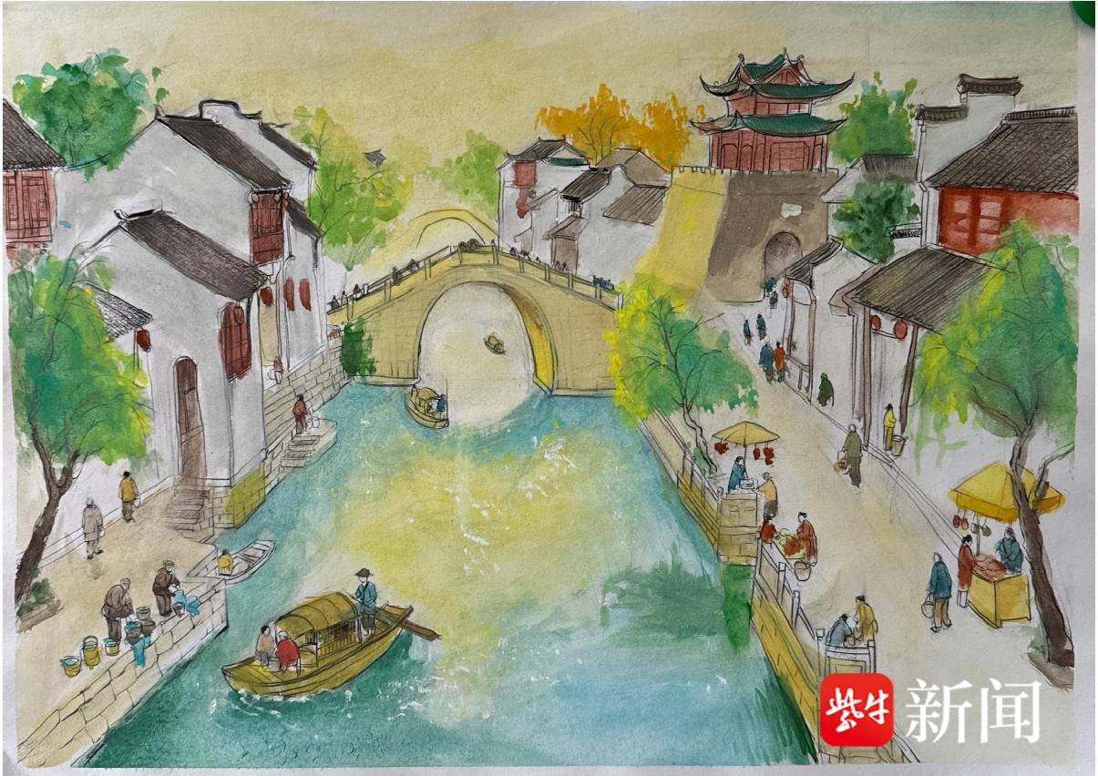 刘晨成 水彩画《古运河岸的热闹风光》