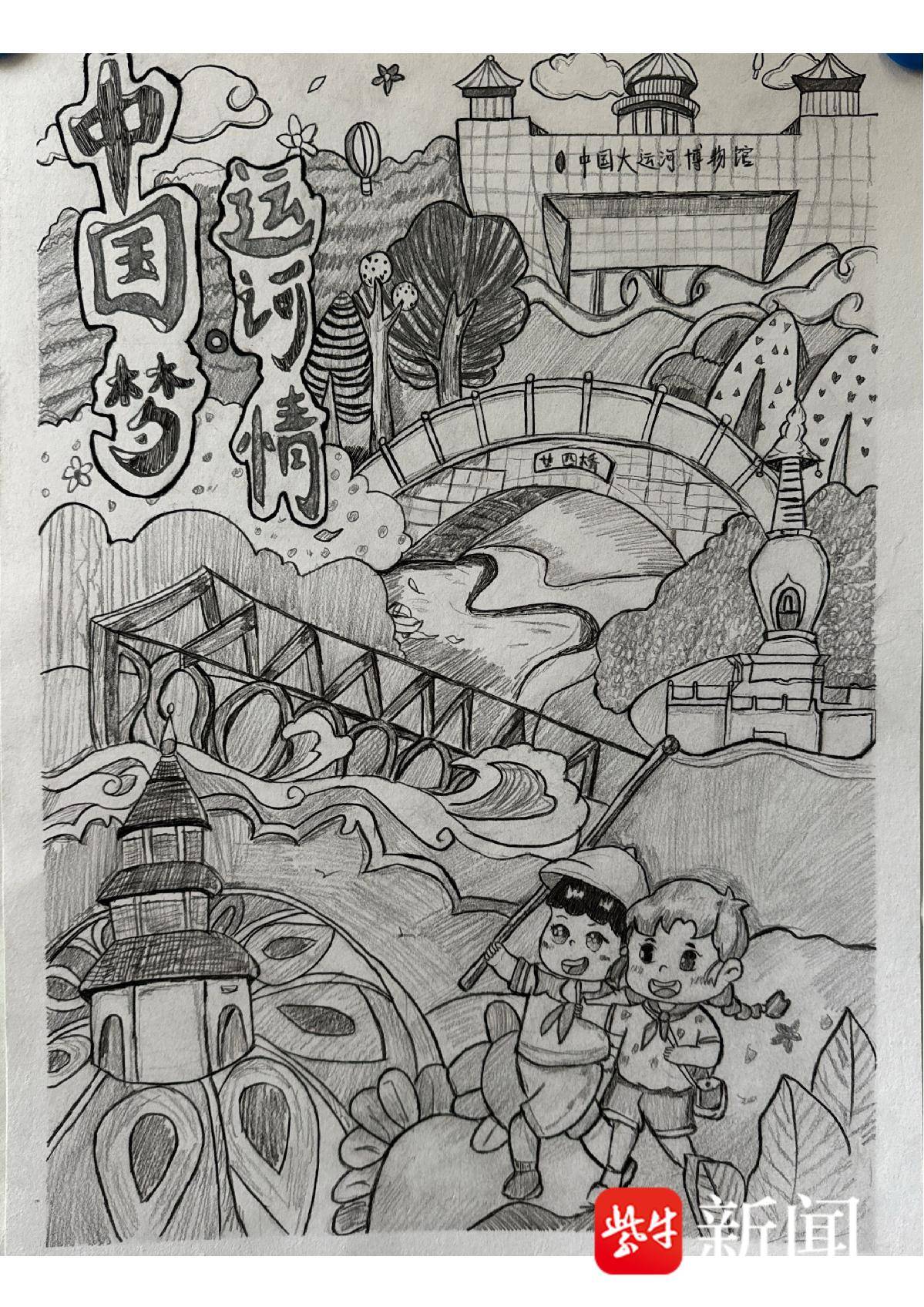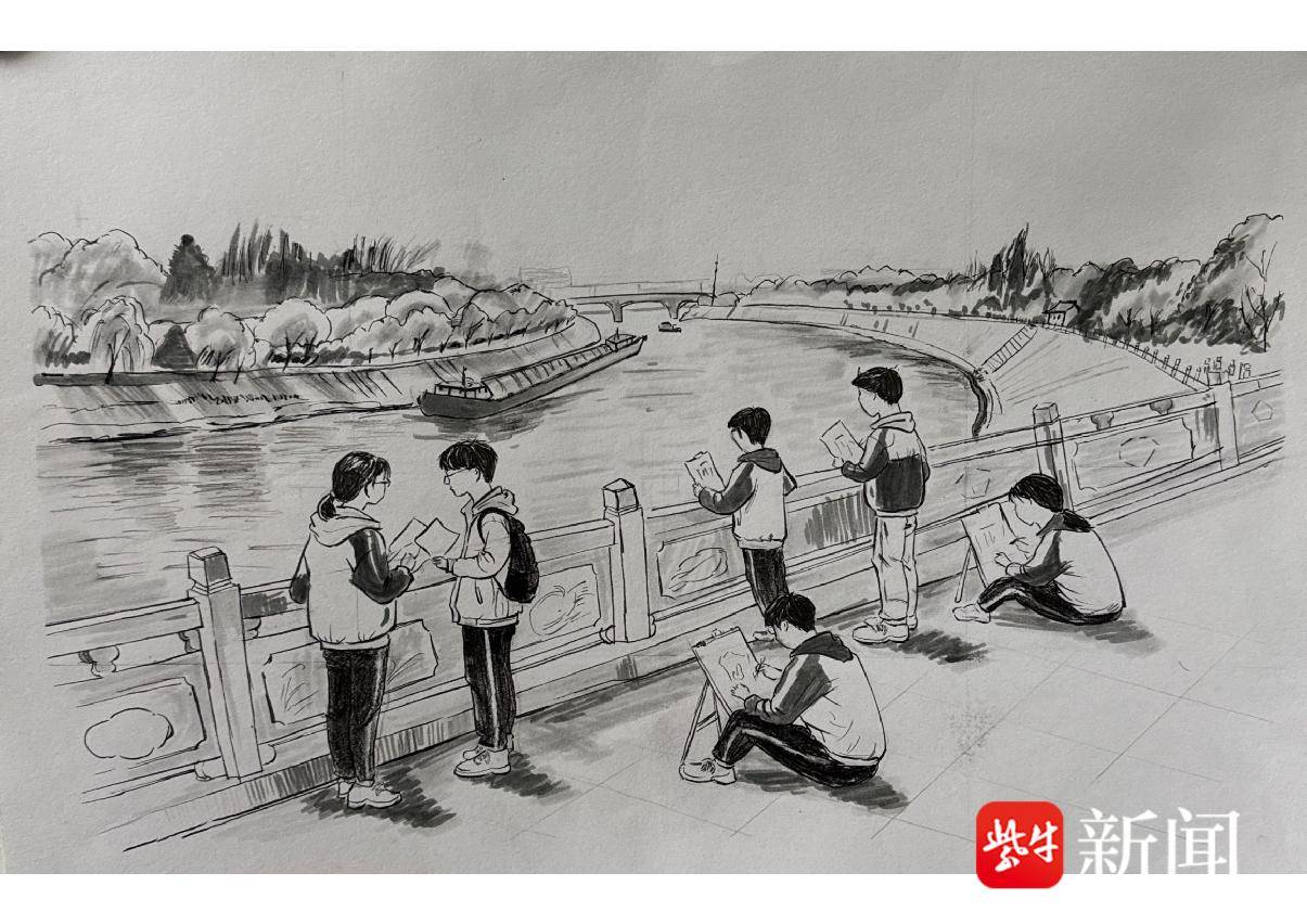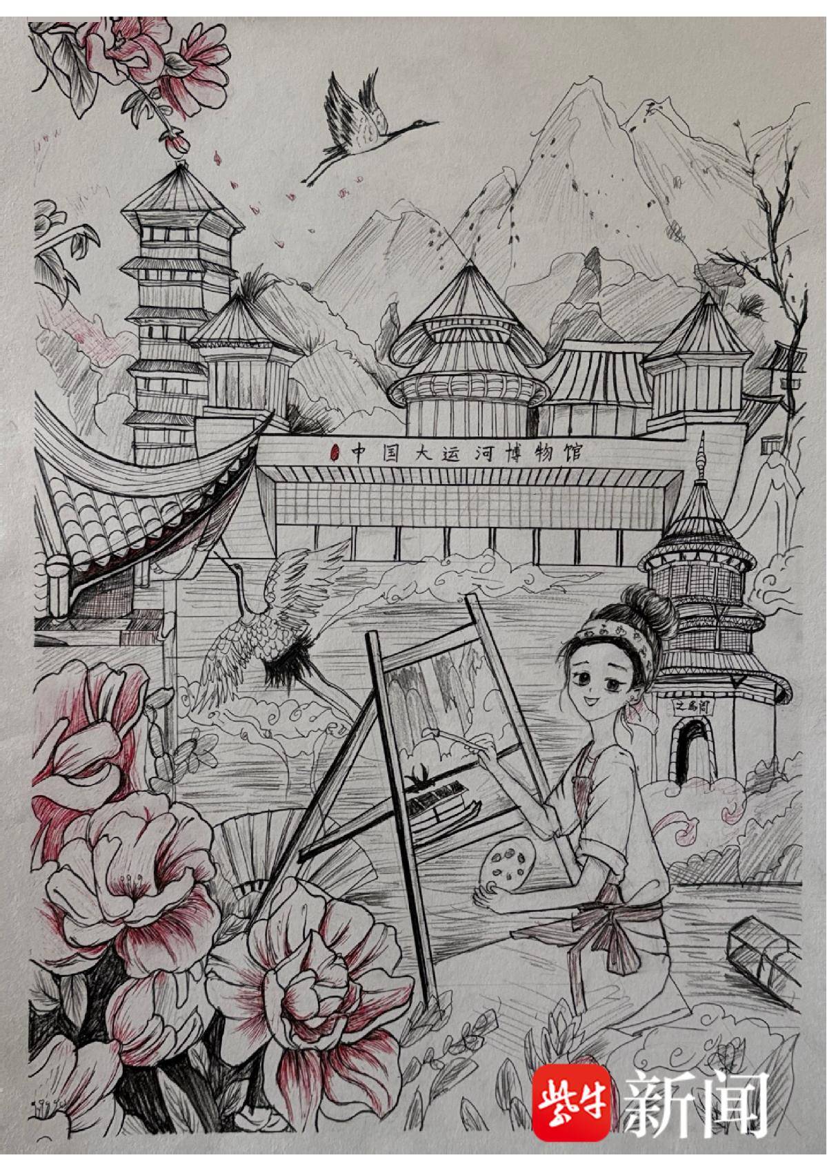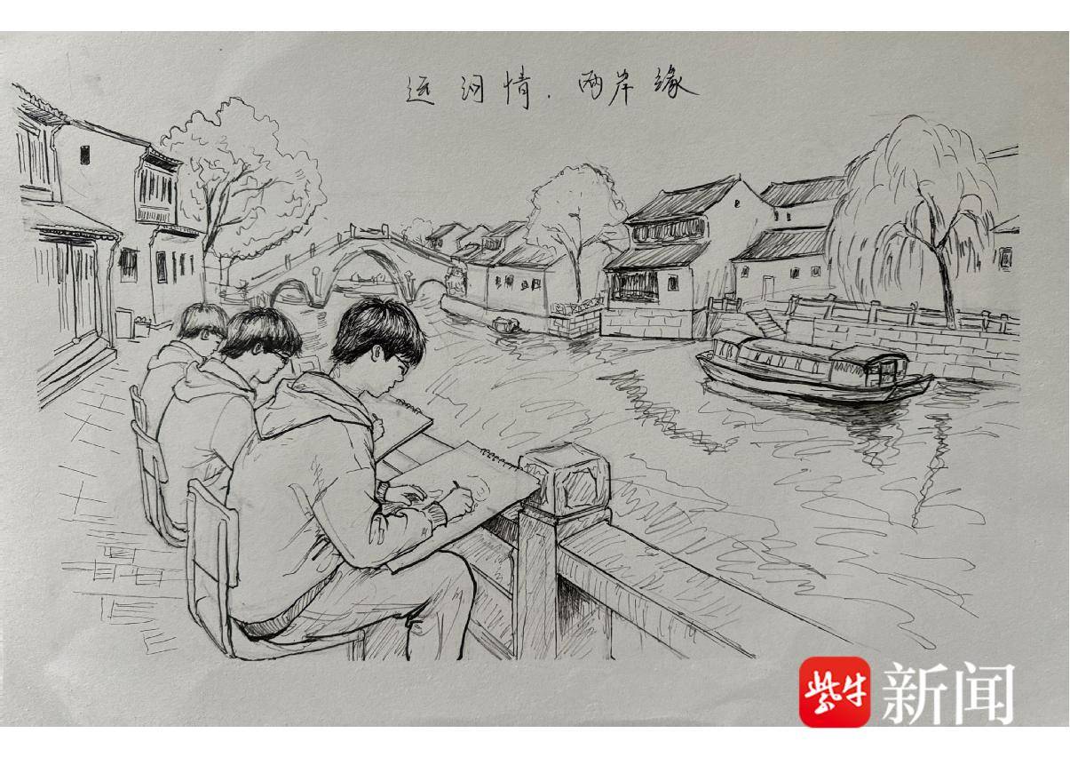 张文慧 钢笔画《两岸缘 画运河》