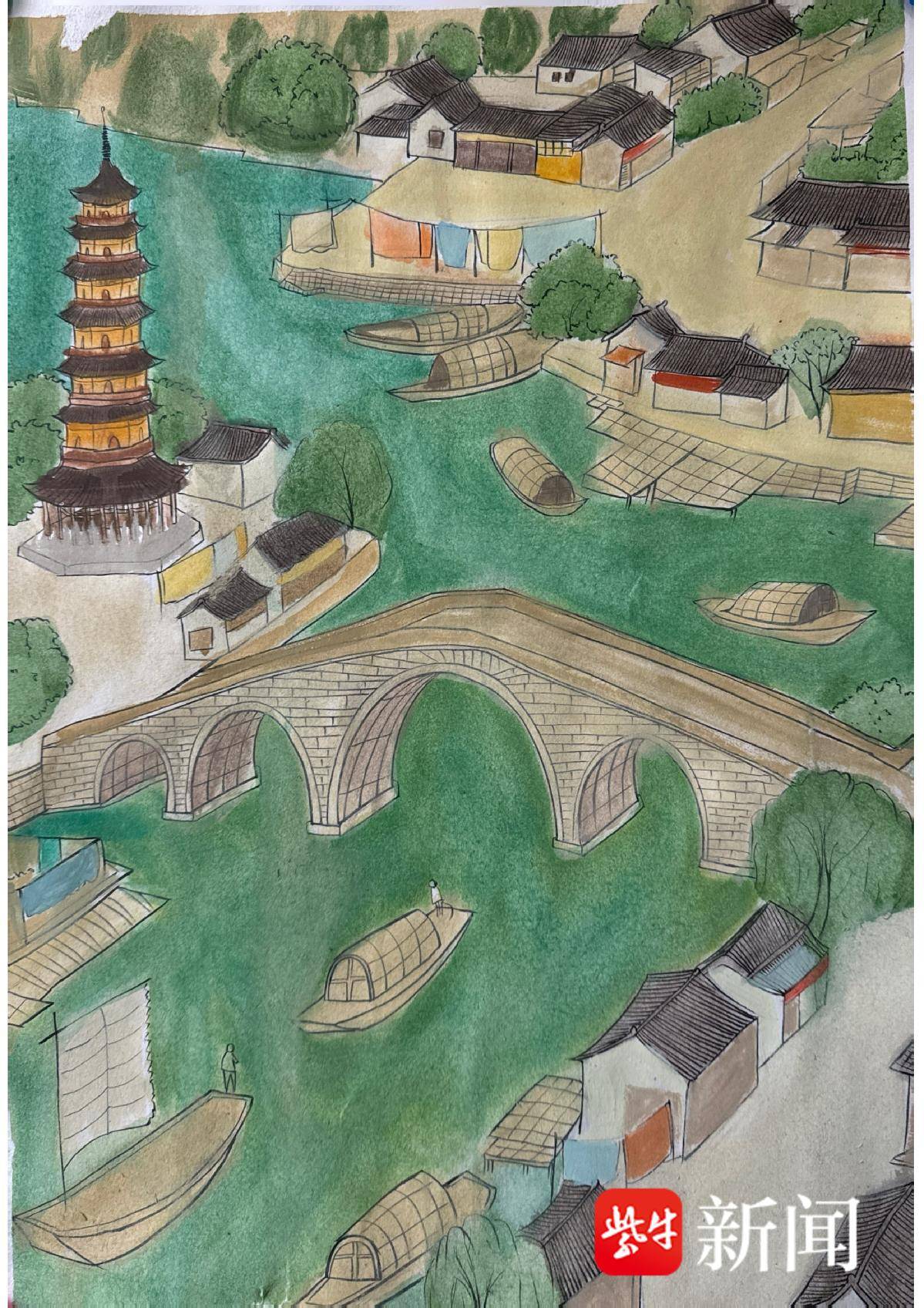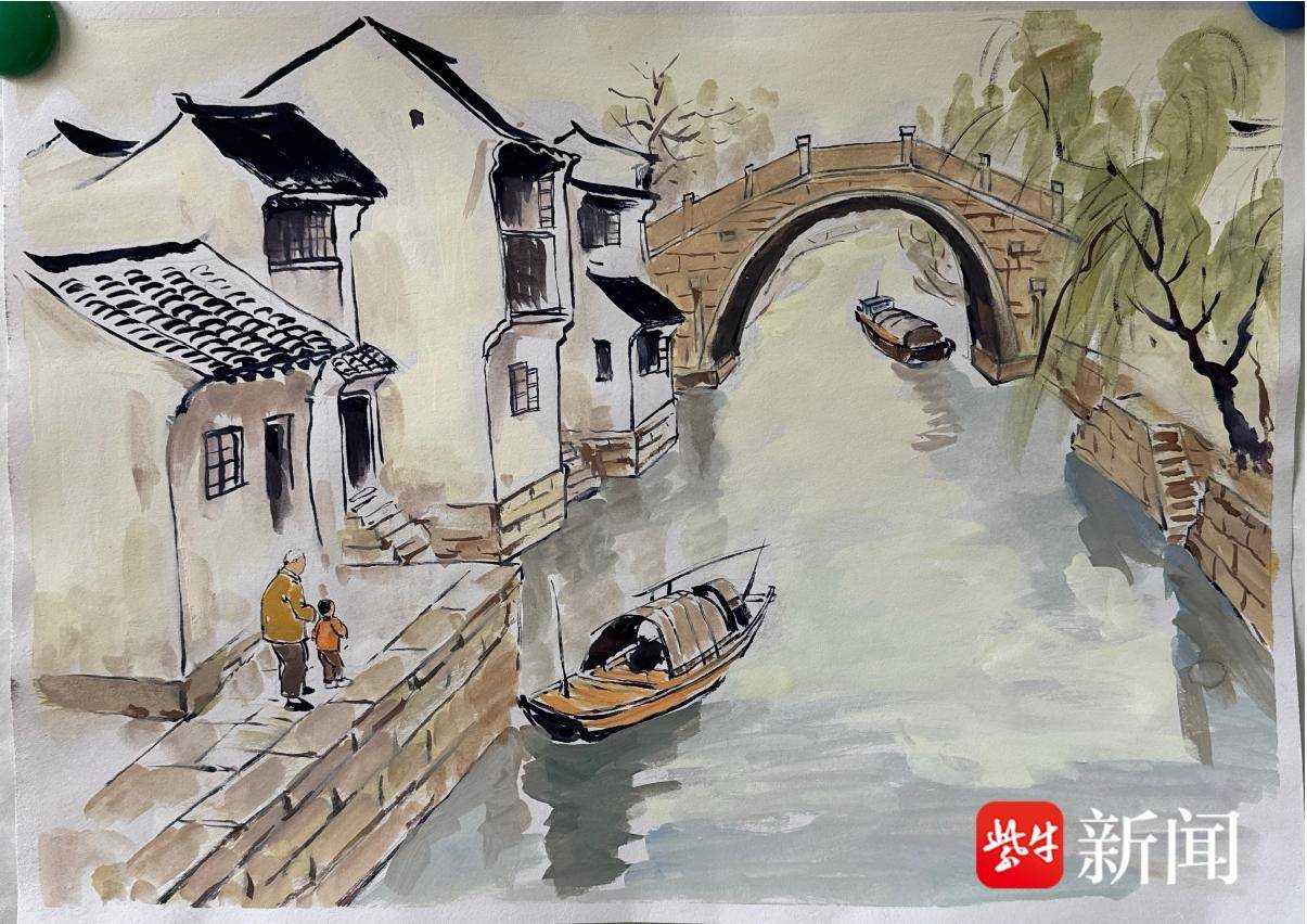 刘佳怡 水粉画《苏韵运河人家》