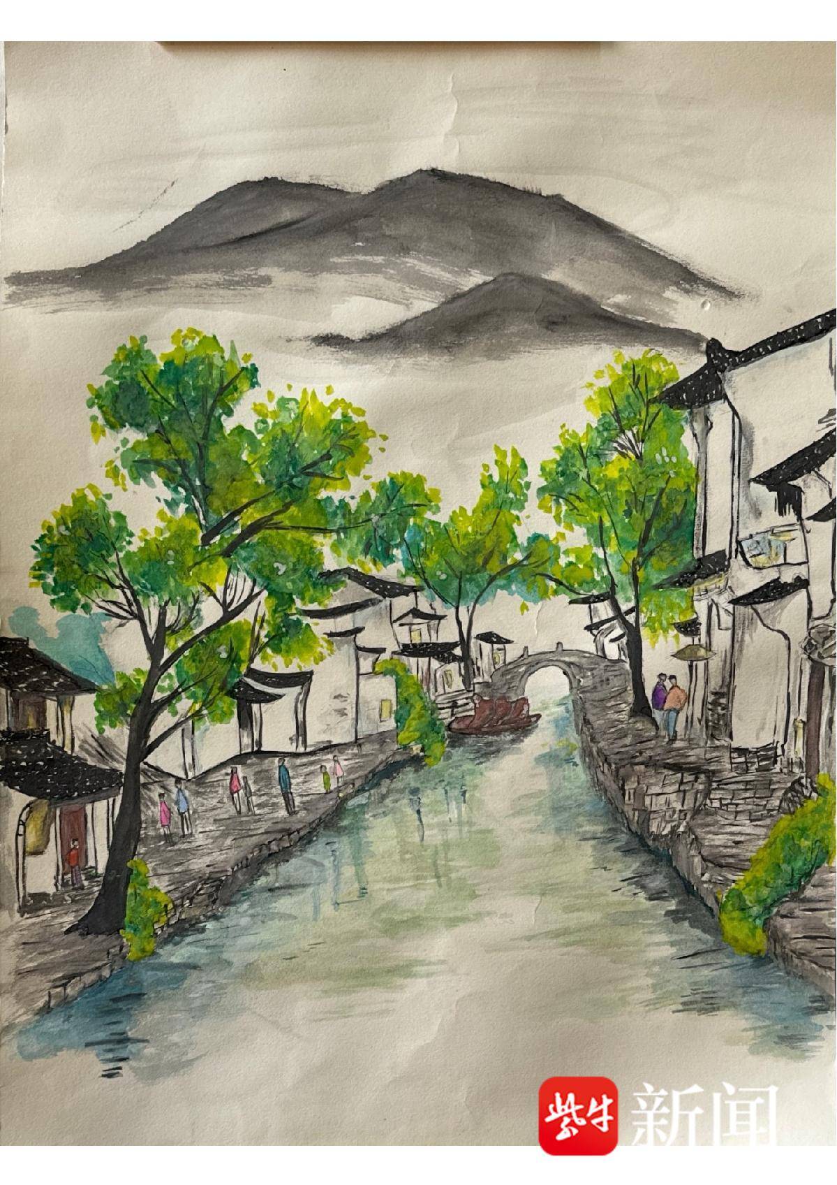 李沫熙 水彩画《一河两岸入江南》