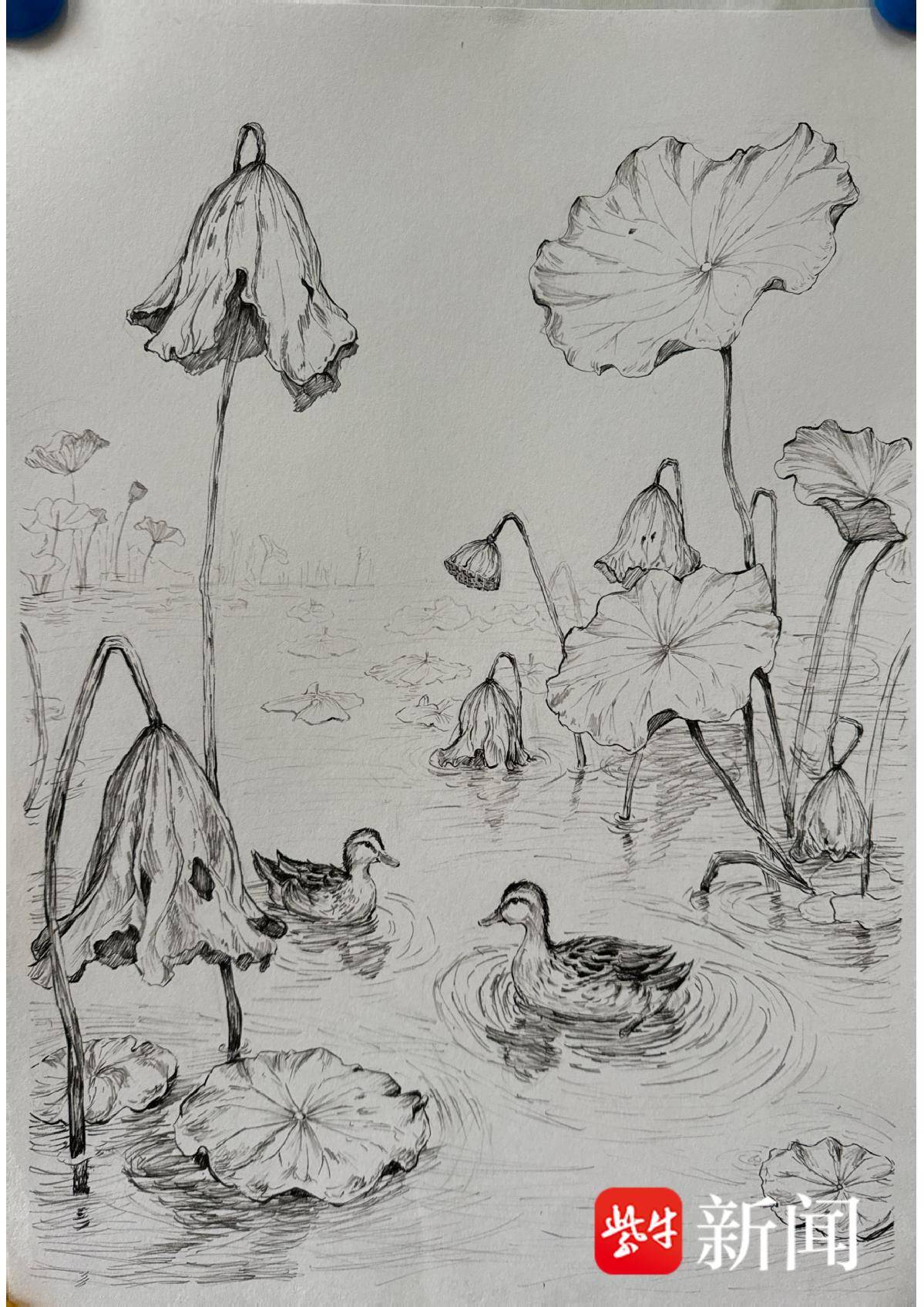 赵邯旭 钢笔画《运河秋荷》