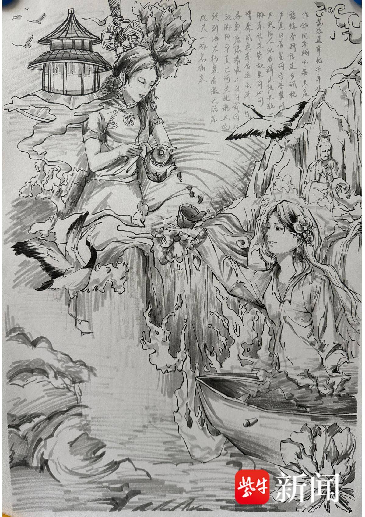 陆玉婷 钢笔画《茶渡》