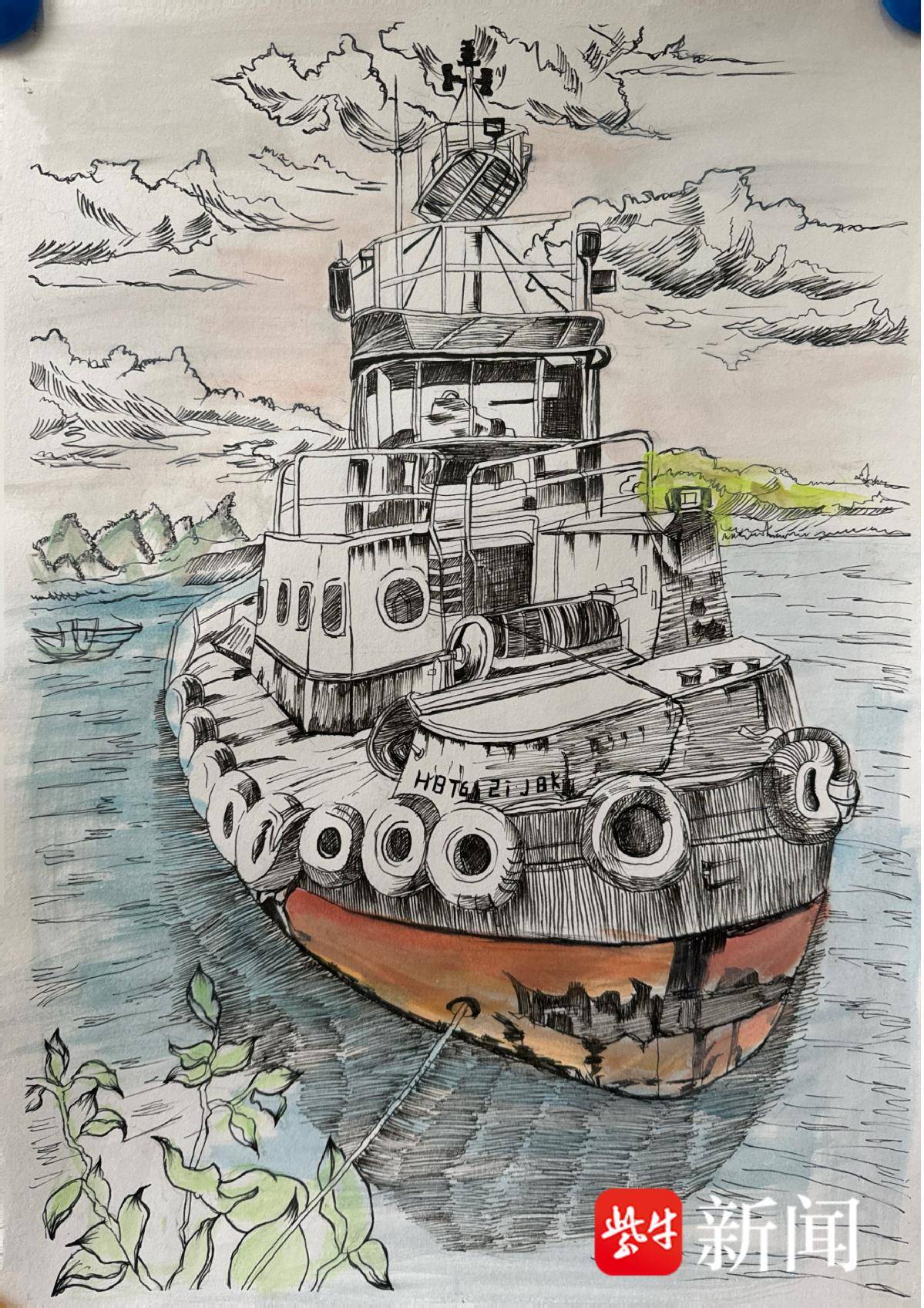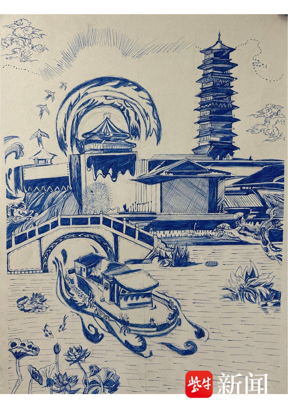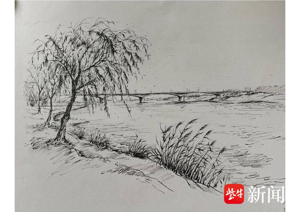 刘芮彤 钢笔画《两岸缘 写生》