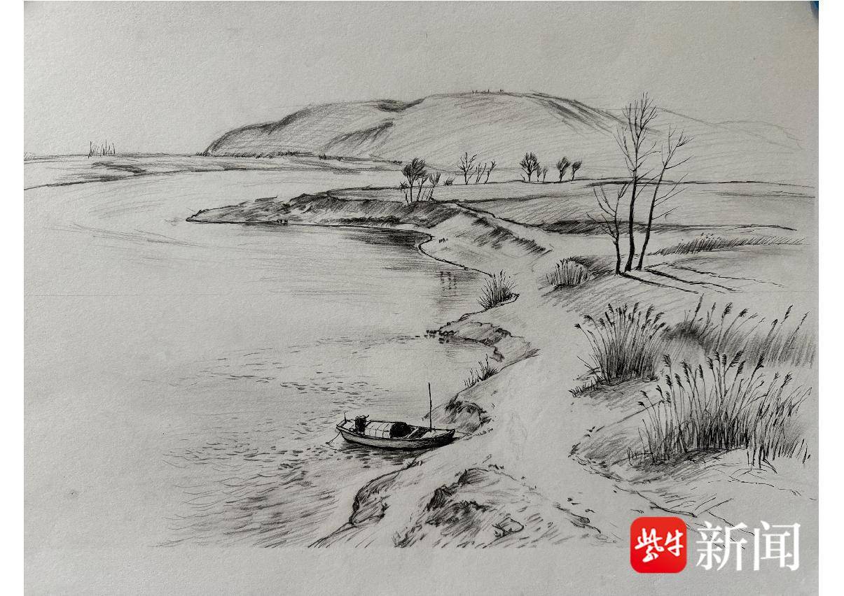 吴丝雨 钢笔画《运河岸 少年》