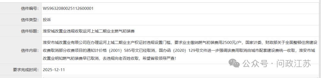 问政播报 | 不缴费就不给办证?淮安市一小区燃气工程安装费与产权证“捆绑”