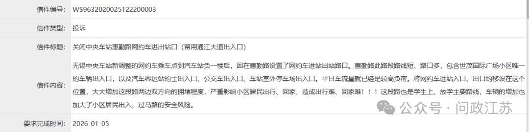 问政播报 | 无锡中央车站网约车接客点移至小区对面,居民出行困难