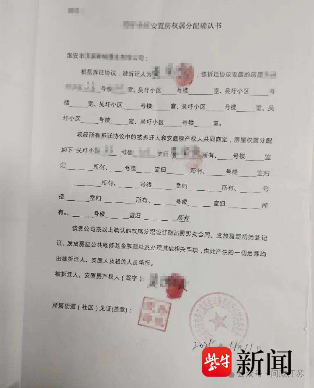 胡先生的安置房交房已经六年了,没有居住过,也没有对外出租。这几年,他一直奔波在南通、上海等地的医院照顾家人,直到最近回到淮安,才有空准备办理房产证事宜。2025年12月31日,胡先生通过问政江苏栏目(电话:025--96096)咨询办证流程。1月4日,开发商淮安市清江浦融合投资控股集团有限公司工作人员向他提供了一份模板,要求胡先生打印出来到社区盖章后,才能办理房产证。