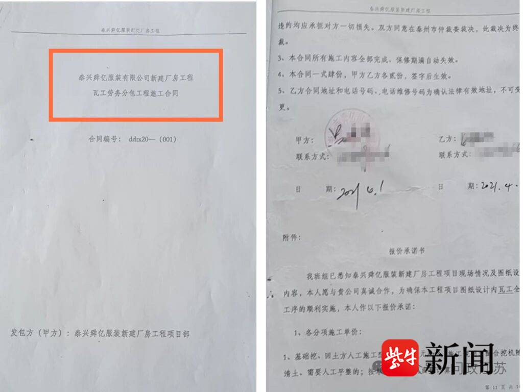 据了解,舜亿服装厂项目包括建设厂房、办公楼、淋浴房等,总面积超2万平方米。2020年,该项目由泰州众城工程建设公司(以下简称:众城公司)承接,取得施工许可证后开工。然而,项目仅进行到一半就停工了。众城公司负责人陈总说,“我们双方存在纠纷,经泰州仲裁委员会调解后解除合同。”