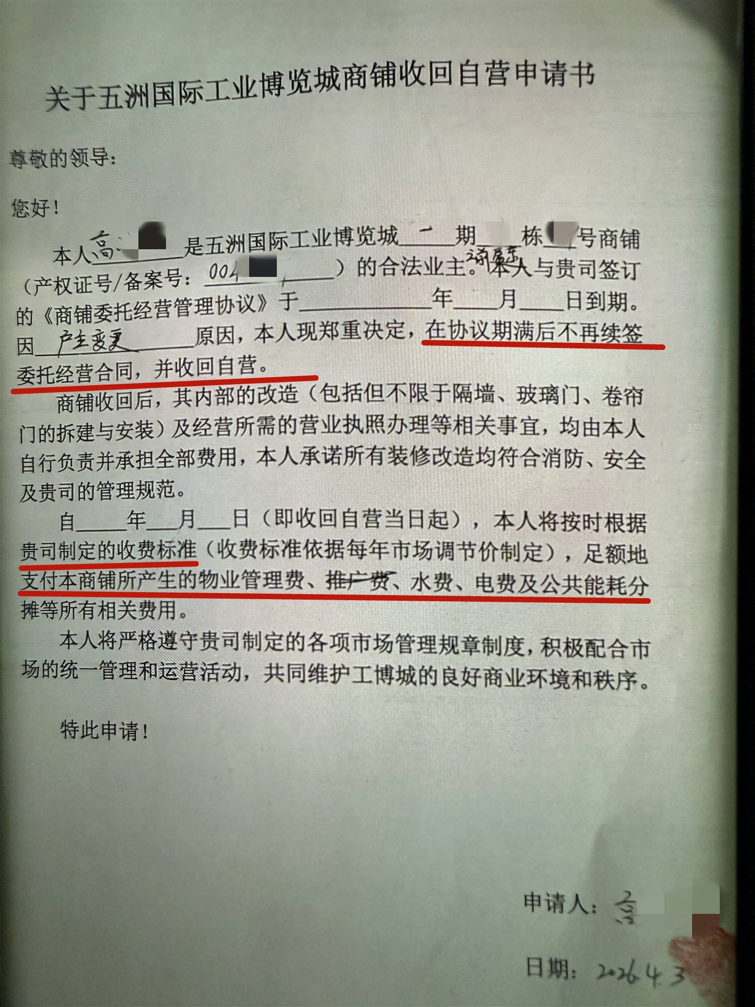 “高女士前来办理业务的时候,工作人员确实没有解释清楚,造成了误会,后来了解情况后,及时进行了处理。”五洲运营公司负责人告诉记者,业主购买商铺后,可以选择选择自主经营,只需要交物业服务费,不需要支付更名费,正常办理交接,开通水电。当然,业主可以选择支付更名费,享受以上特约服务。他介绍,工业博览城有2300多间商铺,其中约有1000户是自主经营。对于本次处理结果,高女士表示满意。