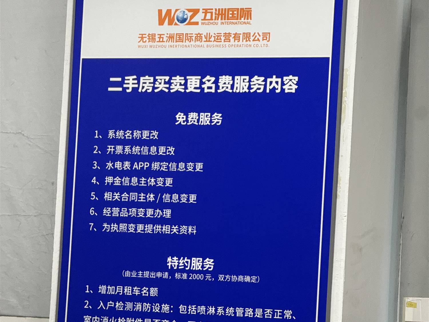 五洲运营公司收取的更名费是什么呢?据了解,更名费服务内容包含免费服务和特约服务两部分。系统名称更改、开票系统信息更改、水电表信息变更、相关合同主体信息变更等属于免费服务。特约服务则由业主提出申请,标准2000元,双方协商确定,包含增加月租车名额、入户检查消防设施等。