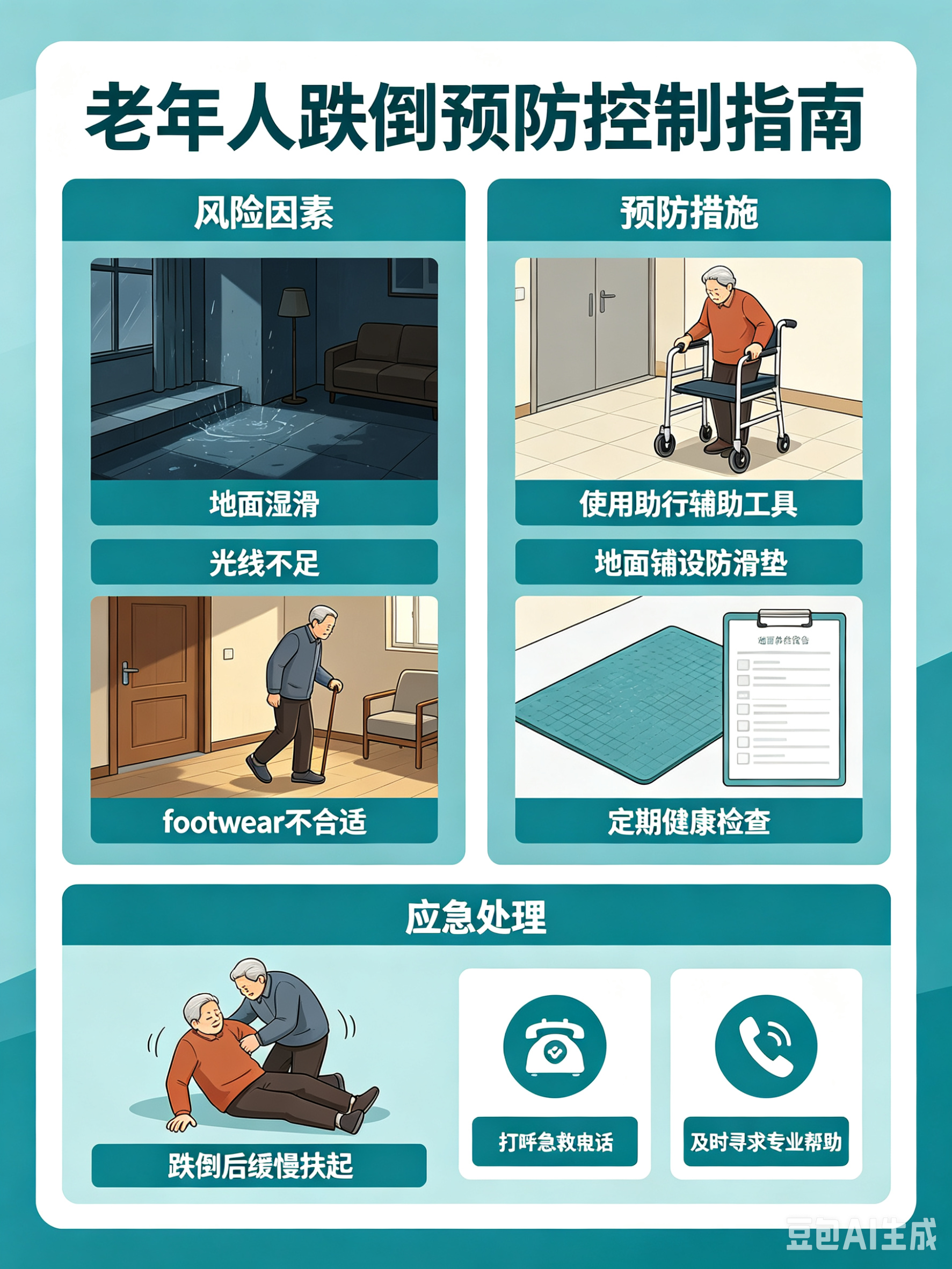 此次行动计划的核心突破,在于把预防关口真正前移。方案围绕“分级预防”和“环境改造”两大抓手,给出清晰路线图:推动各级医疗卫生机构建立跌倒风险评估与分级预防机制,重点加强对高龄、独居、失能、残疾及农村老年人的服务保障——跌倒预防正从“一视同仁”走向“精准滴灌”。同时,鼓励有条件的地区为高风险老年人家庭提供居家环境安全评估、适老化改造和防跌倒用品配置。一块防滑垫、一个低位淋浴把手,微小改变却可能在关键时刻挽回一条生命。