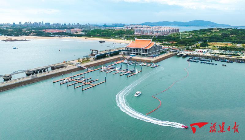 8月20日,平潭22号国际游艇码头航拍。2024年6月8日,平潭22号国际游艇码头正式投入运营,码头一期建设总投资约0.7亿元,打造平潭首个闽台自由行开放式码头,至今累计接待游客近17000人次。施辰静 摄