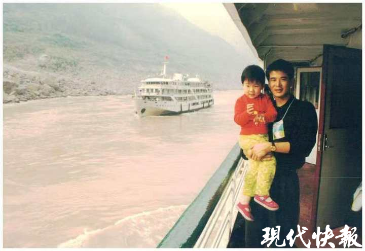 2003年三峡刚通航,吴佳璇与爸爸的合影