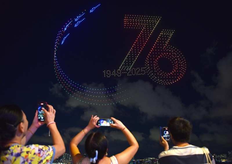 香港举行大型无人机汇演庆祝新中国华诞