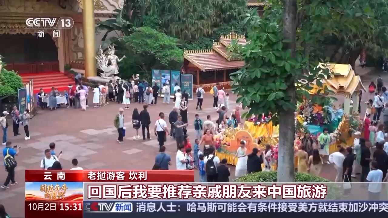 总台央视记者 宋琎:通过东盟国家旅游团免签政策入境的外国游客,大都是中老年群体,不同于年轻人热衷于热闹的集市和刺激的活动,他们更在意的是寻访西双版纳独特的民俗文化,感受民族传统与现代融合的氛围。