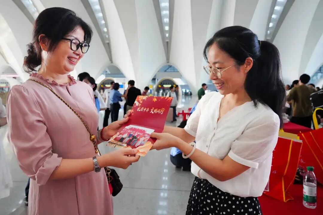 前几天我和朋友一起出行,一踏入南昌东站就看到了检票口飘动的国旗,国庆节氛围扑面而来。候车室内举办的“礼赞中华、文明同行”主题宣传活动,也吸引了我们的眼球,恰巧带着相机的我们决定拍个vlog!
