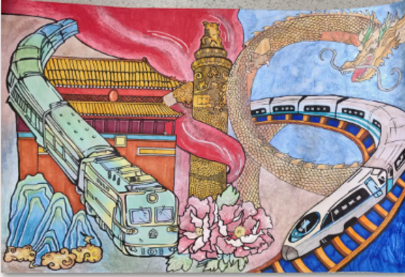 我家在苏州火车站旁,附近有一条铁路,它像一条长长的银带,从我生活的家一直通向远方。每天,我都能看到火车从铁路上飞快跑过,带着人们从一个地方奔向另一个地方,好像在讲述着一个又一个动人的故事。
