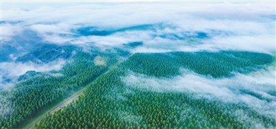 提升生态系统质量和稳定性 位于河北承德的塞罕坝机械林场云雾缭绕,林海浩瀚。“十四五”时期,全国森林覆盖率达25.09%,比2020年提高约2个百分点,我国成为增绿最多最快的国家。 刘满仓摄(影像中国) |