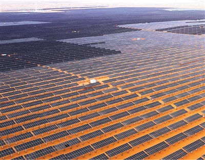 加快发展方式绿色转型 宁夏全力打好“三北”工程黄河“几字弯”攻坚战,截至今年5月底,已完成治理面积422万亩。图为宁夏中卫的腾格里沙漠新能源基地。 刘宣烨摄 |