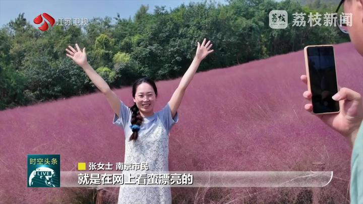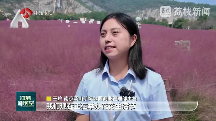 荔枝新闻中心记者王鹏说:“在位于南京东郊的汤山矿坑公园,最近这里的数百亩粉黛乱子草已经进入盛花期,吸引了众多市民游客在国庆假期前来拥抱自然、拍照打卡,记录下美丽瞬间。”