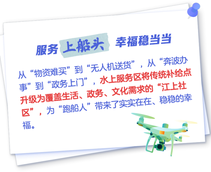 千百年来,行船都是苦差事。曾几何时,长江上的他们逐水而居,却难见水的清澈;以船为家,却难觅家的温暖。由于水上公共服务设施建设相对滞后,长江干线曾被称为“没有服务区的水上高速公路”。如今长江大保护的民生温度,正随江风拂过万千航程,书写着生态与民生共赢的新时代答卷。