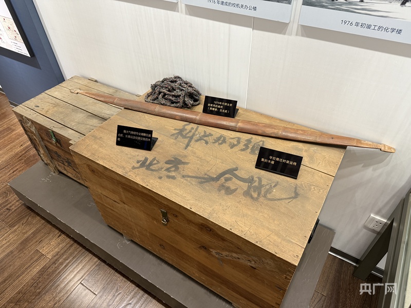 展柜中两块陈旧的红色砖块,铭刻着“史上最牛烧砖工”的故事。“当时,为了能尽快恢复科研和教学工作,中国科大师生亲手烧制了建造化学楼的红砖,其中很多老师、学生如今已经成长为教授甚至院士,所以我们也经常戏称这群烧砖工为‘史上最牛烧砖工’。”王茂华介绍。