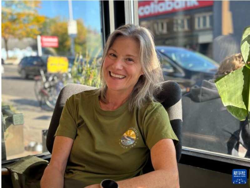 10月4日,佩姬·西利在加拿大渥太华一家咖啡馆接受记者采访。新华社发(陈敏摄)