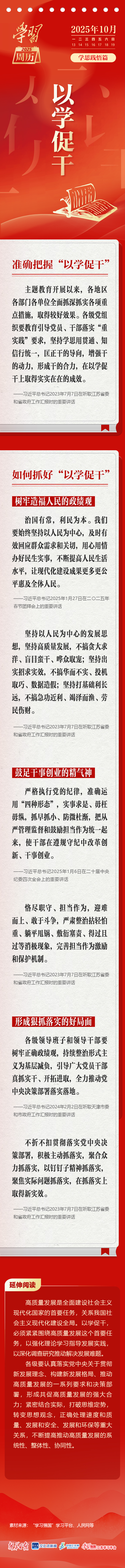 《学习周历》特别推出“学思践悟篇”,聚焦“以学铸魂”“以学增智”“以学正风”“以学促干”四大主题,深入领会习近平总书记相关重要论述。本期,让我们一起学习“以学促干”的深刻内涵。