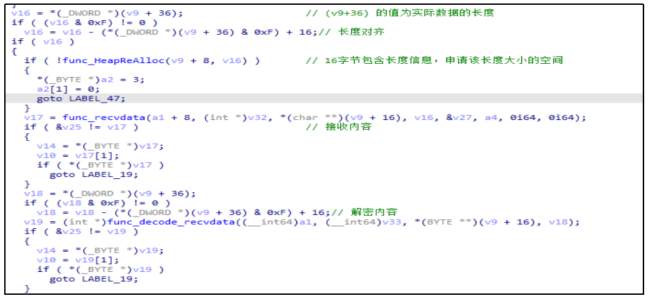 “Back_Eleven”具有主动回连和被动监听两种工作模式:在主动回连模式下,“Back_Eleven”解密内置的主控端控制服务器IP地址,并使用内置的RSA加密算法公钥完成密钥交换,然后使用AES算法将上线信息加密后,利用TLS协议加密传输到主控端;在被动监听模式下,“Back_Eleven”通过监听Windows系统网卡流量,筛选主控端发送的特定条件数据包,实现主控端命令执行。