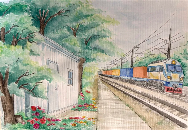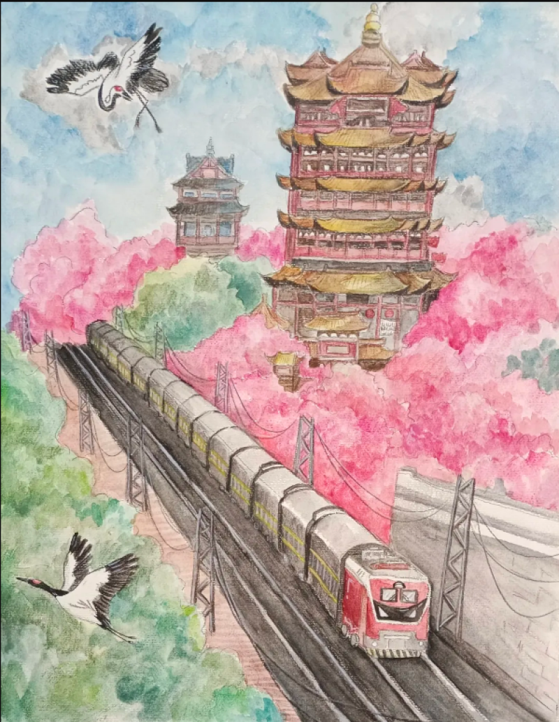 沿途,我还看到了弯弯曲曲的梯田,像绿色的波浪;看到了亮晶晶的河流,像蓝色的丝带;铁路两旁的坡地上,都种着绿油油的小草和树木,小鸟在上面唱歌。偶尔,还能看到一座古老的宝塔静静地站在山坡上,看着我们飞驰而过。那一刻,我觉得时间好像也跟着我们一起旅行了。