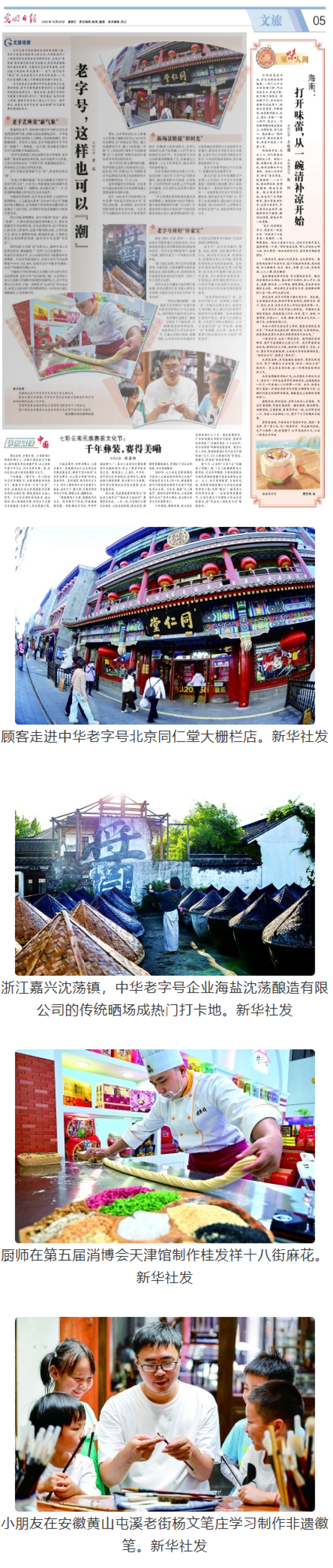 作为民族自主品牌和中华民族优秀文化成果的载体,老字号凝聚着深厚的历史文化底蕴和独特的民族记忆。截至目前,我国中华老字号数量已增加到1455个,“国货潮品”备受年轻人青睐,整体年营业收入超过2万亿元。数字背后,彰显出老字号这块“金字招牌”对文旅消费的强劲拉动力。