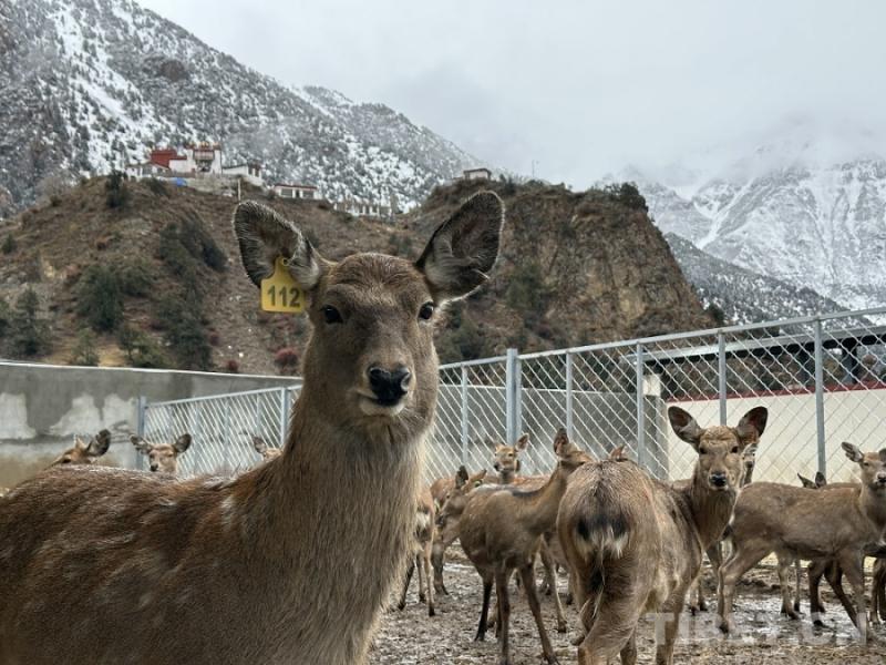 中国西藏网讯 车辆经过数小时的跋涉,沿着土石山路一路颠簸,我们终于抵达海拔4000米的西藏第一家规模化高原生态养鹿基地:工布江达县娘蒲乡梅花鹿养殖基地。皑皑白雪中,一群毛色华美、体态优雅的梅花鹿正悠闲踱步,与远方的雪山、近处的牧舍构成一幅动人的生态画卷。