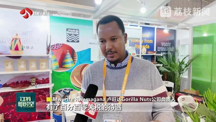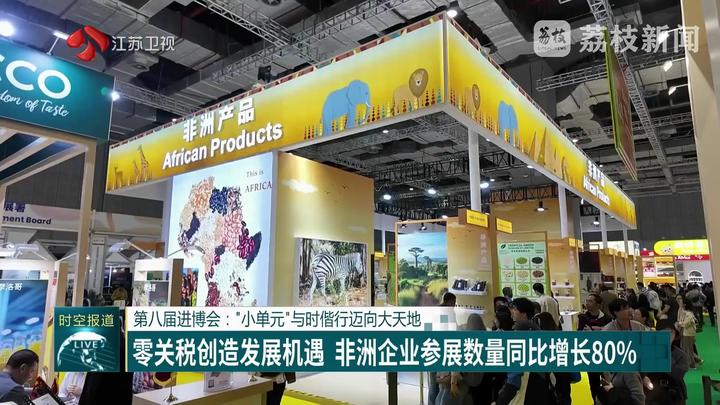 荔枝新闻中心记者范洁萍说:“感受到非洲的风情了吗?本届进博会扩大了非洲展区面积,并为最不发达国家提供零关税政策,帮助他们的产品走向市场。”