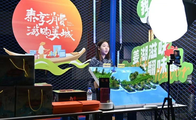 拼搏精神从绿茵场延至沃野。姜堰本地电商敏锐捕捉这一流量风口。通过“直播带货”将线上体育热情,转为线下实际订单,让本地优质农产品搭上“冠军快车”走向全国。一场“冠军蟹”助农直播,仅仅2小时就吸引23万人次观看,线上销售额18万元。簖蟹养殖户王俊说,以前只做线下销售,今年电商产业园带动转型,销售额已经突破80万元。