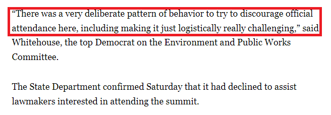 与此同时,怀特豪斯对美国民主党在应对气候问题上不力做法的批评也毫不吝啬。